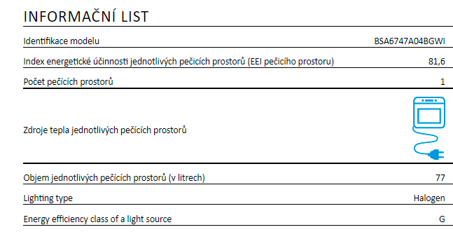 Spotřeba energie (nucená konvekce vzduchu)        0,71 kWh