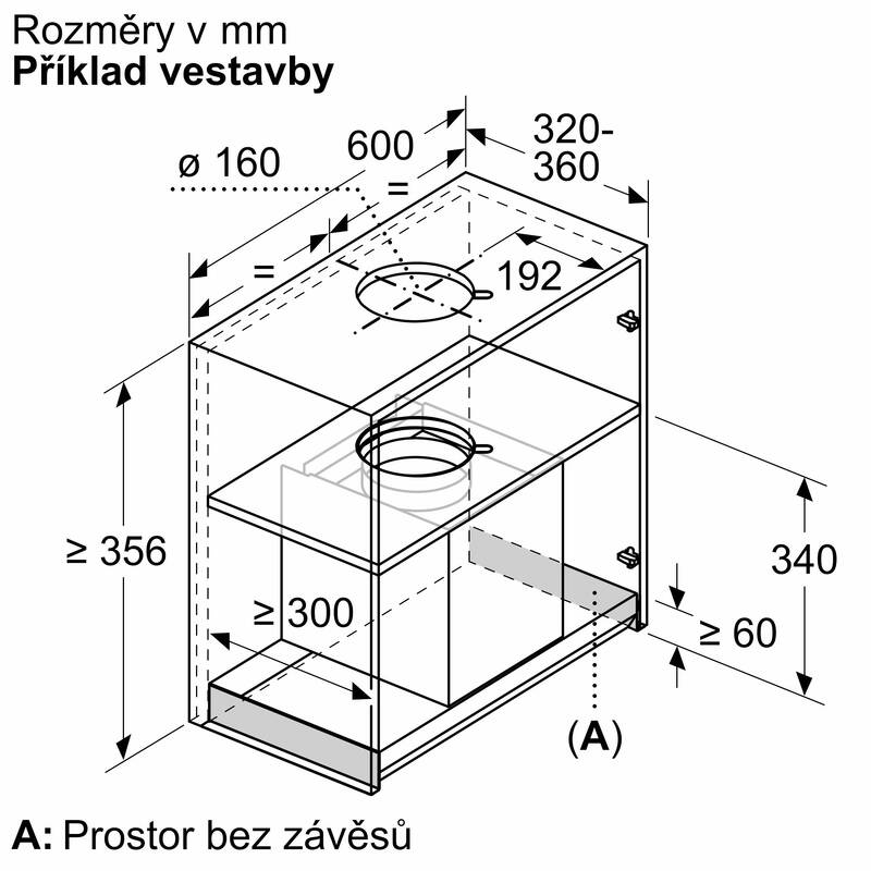 Výkon 2: výkon odsávání 458 m3/h; hlučnost 60 dB(A) re1pW