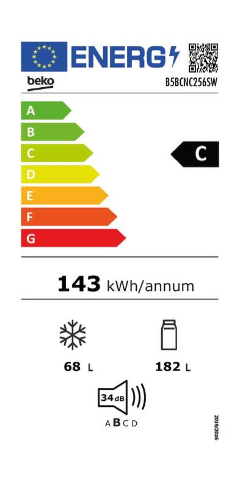 Vestavná chladnička s mrazákem Beko B5BCNC256SW o výšce 177 cm nabízí kombinaci prostorného úložného prostoru a moderních technologií pro dlouhodobé uchování potravin. Chladnička disponuje objemem 182 litrů, zatímco mraznička nabízí kapacitu 68 litrů. Spotřebič se řadí do energetické třídy C a jedná se o úsporné zařízení s roční spotřebou 143 kWh. Srdcem kombinované chladničky je výkonný a úsporný ProSmart™ invertorový kompresor. Dvojitý chladicí systém NeoFrost™ zajišťuje oddělenou cirkulaci vzduchu v chladicí a mrazicí části, čímž zabraňuje mísení pachů a tvorbě námrazy. Díky kluzným pantům lze spotřebič snadno integrovat do kuchyňské linky a dosáhnout tak čistého vzhledu bez mezer. Interiér kombinované chladničky je osvětlen LED osvětlením, zvuková signalizace pak upozorní na otevřené dveře. Kombinovaná chladnička s mrazákem má velmi nízkou hlučnost, pouhých 34 dB, která zaručuje tichý provoz.