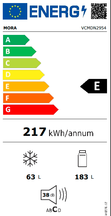spotřeba energie 217 kWh/rok